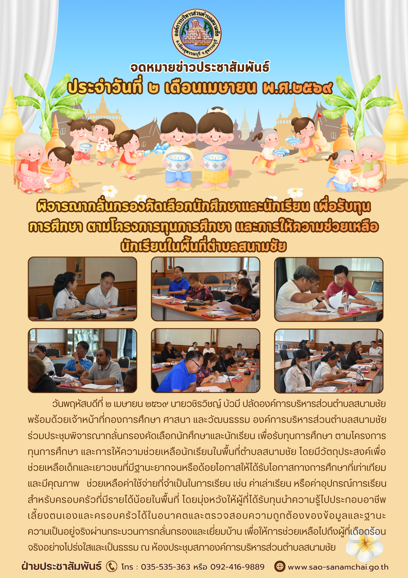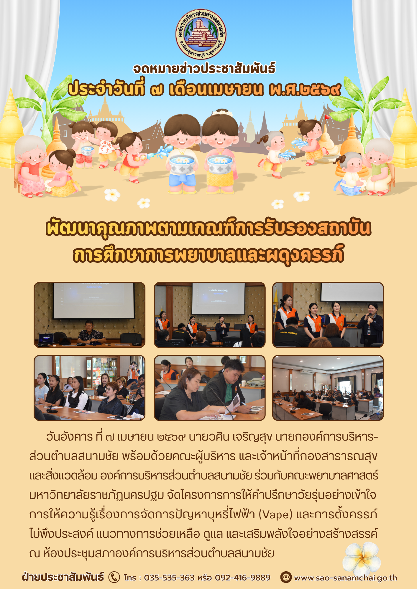 | ประชาสัมพันธ์ข่าวสารประจำวันที่ 8 เดือนเมษายน พ.ศ.2569 | ประชาสัมพันธ์ข่าวสารประจำวันที่ 7 เดือนเมษายน พ.ศ.2569 | ประชาสัมพันธ์ข่าวสารประจำวันที่ 2 เดือนเมษายน พ.ศ.2569 | ||